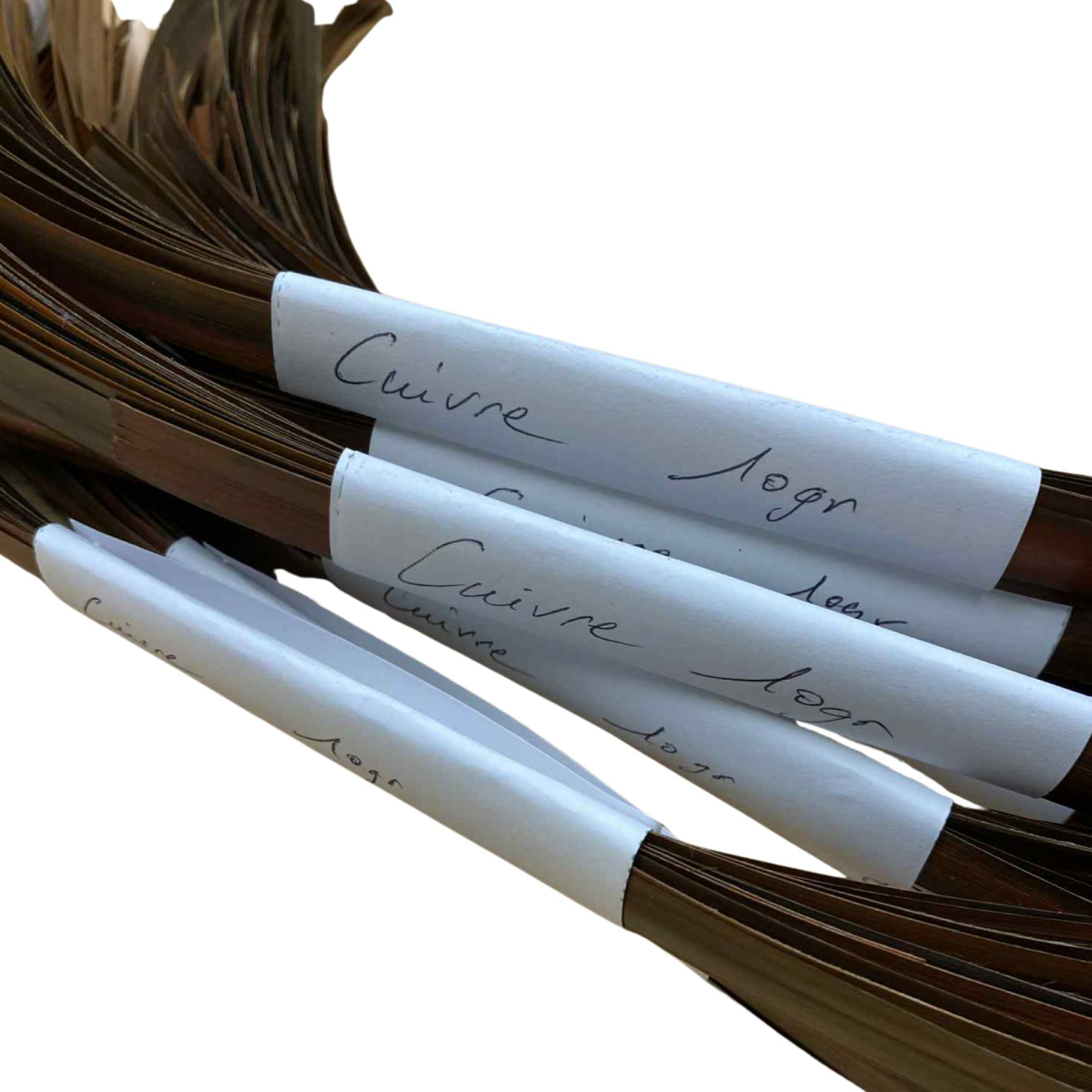 La paille de seigle aplanie pour marqueterie de paille couleur Cuivre est un matériau exceptionnel, prête à l'emploi, particulièrement apprécié pour sa souplesse et sa résistance. Chaque fétu de paille mesure entre 15 et 60 cm. La paille est teintée artisanalement, ce qui peut entraîner des variations de couleur sur le même brin et entre les brins. Cette paille de seigle déjà coupée et aplanie est cultivée en Bourgogne se vend en paquets de 10g , et elle est parfaite pour divers projets de marqueterie, de rempaillage et de création d’objets décoratifs.