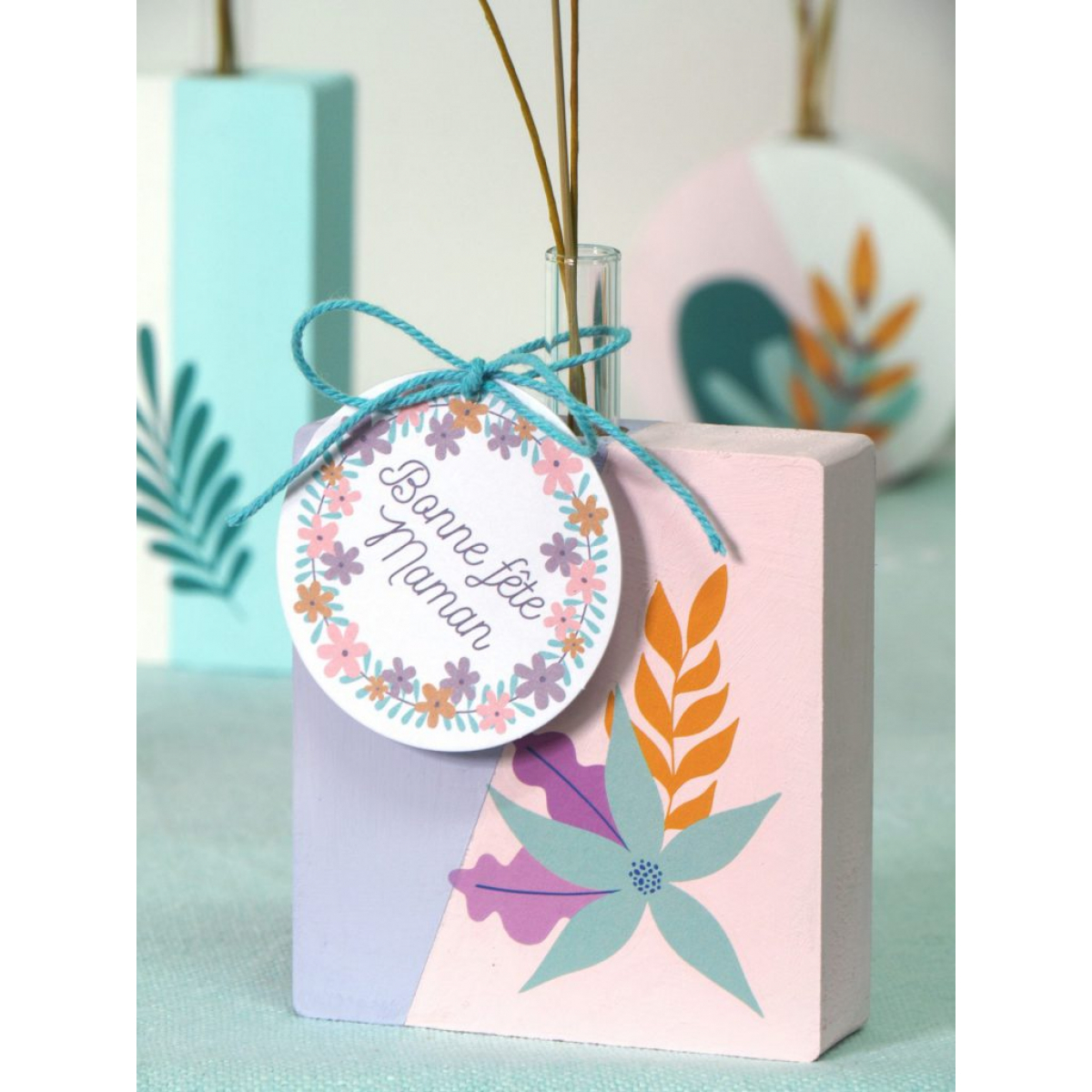 Ajoutez une touche de finesse et d’originalité à votre décoration avec ce vase carré en bois soliflore, conçu pour être personnalisé en marqueterie de paille de seigle. Composé d’un support en bois (10.5 x 7.4 x 2.2 cm env.) et d’un tube en verre (7.5 x 1 cm env.), il est parfait pour sublimer une fleur séchée, une tige fraîche ou une composition végétale minimaliste.